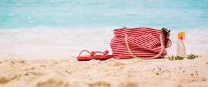 Beach,Bag,,Flip-flop,And,Suncream,On,Beach