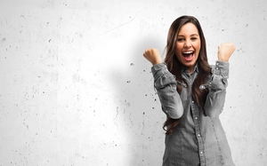 Happy,Young,Woman,Victory,Sign